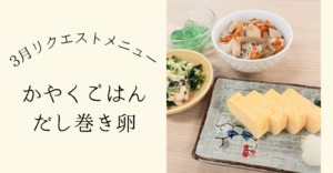 3月は天津飯、4月はかやくごはんとだし巻き卵を提供いたしました。